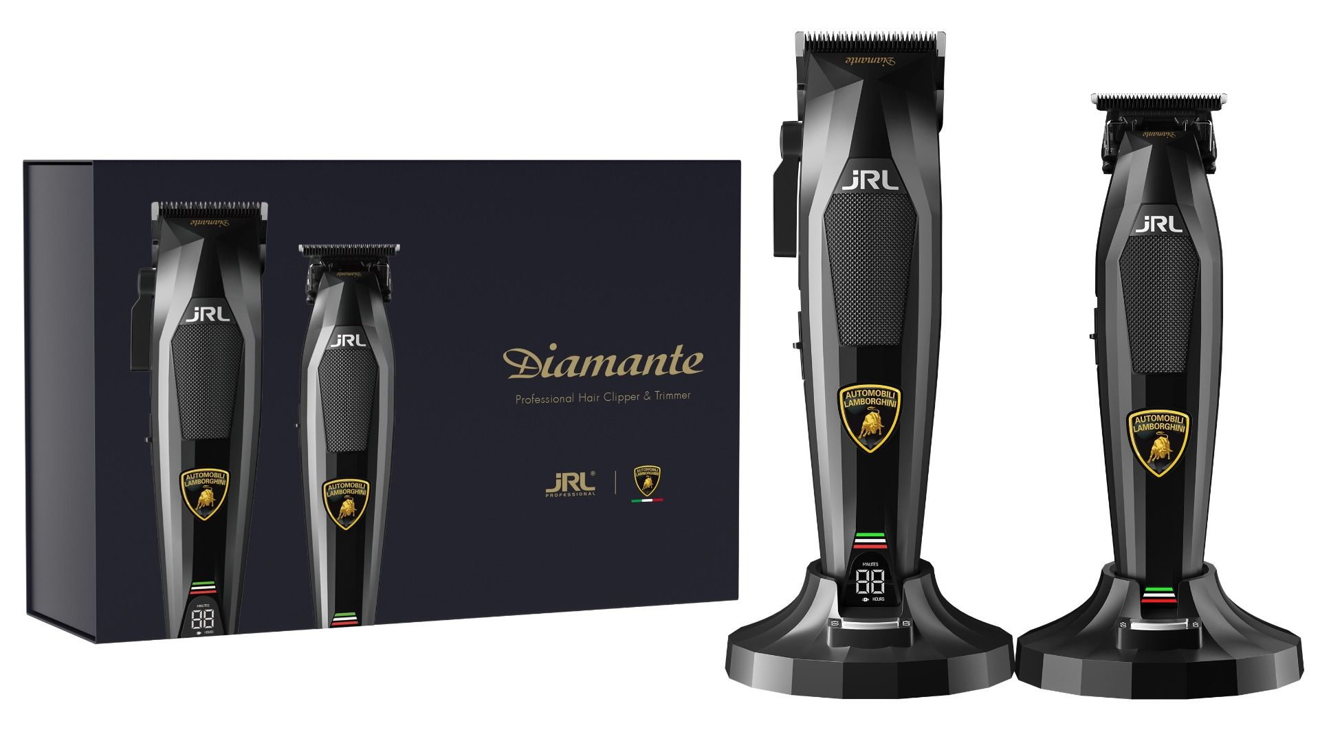 Precision möter prestanda. Upplev skärrteknikens höjdpunkt med JRL x Lamborghini Diamante Clipper + Trimmer Set — konstruerat för elitfrisörer som kräver kraft, vridmoment och italiensk-inspirerad design. Denna premiumduo kombinerar djärv stil med nästa generations funktionalitet, och levererar kontroll från fade till detalj, extremt tyst drift och diagnostik i realtid via LED.